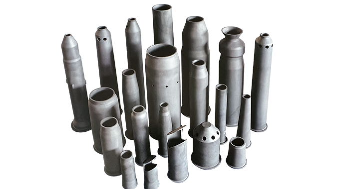 我公司采用等靜壓成型工藝,產品致密度高,經表面精細打磨拋光后,與其它管道復合組裝。該產品規格齊全,尺寸范圍:直徑50-750mm。